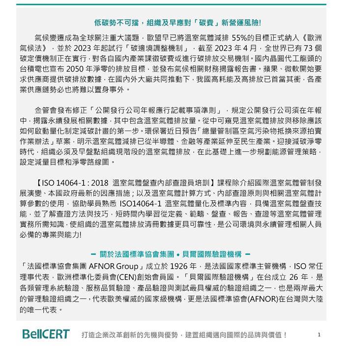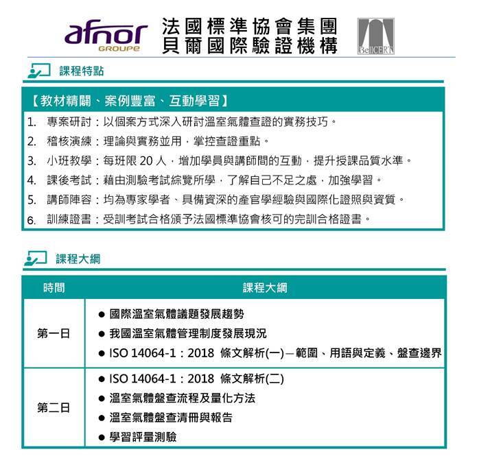 [招生中] ISO14064-1溫室效應盤查顧問訓練認證(原115/01/12-01/13,延至01/26-01/27上課)